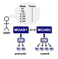 SCHEDCFG[gridmaster] MODE=NORMAL RMCFG[clusterB] TYPE=moab OMAP=file://$HOME/clusterb.omap.dat ... node:b_*,*