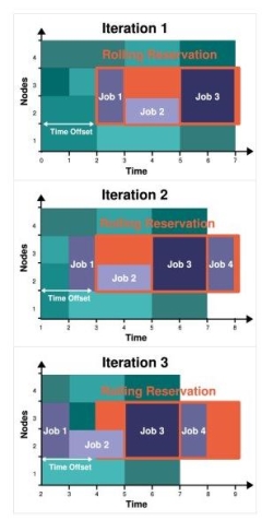 Rolling reservations are enabled using the ROLLBACKOFFSET attribute and can be used to allow users guaranteed access to resources, but the guaranteed access is limited to a time-window in the future. This functionality forces users to commit their resources in the future or lose access.
