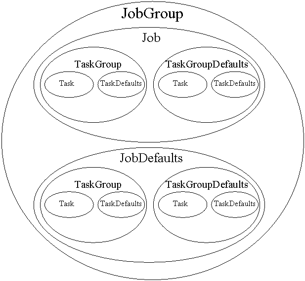 <TaskGroup> <!-- TaskGroup Properties -->+ <!-- Job Properties -->* <Task>+ <TaskDefaults>? </TaskGroup>