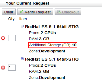 Many forms may have a queue, or a client-side request queue to store unsubmitted data. For example with Create VPC, the request queue would contain a collection of reservations the user wishes to create. For submit job, the queue may contain a collection of jobs that will be submitted upon page submission. The queue element defines what data is stored in the queue and the interface for the request queue, which is the list of items generated when a user clicks Add To Request. The following image is an example of how the queue might look in the create VPC page if the user wants two reservations in their desired VPC: