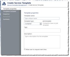 On the Template properties tab, you can specify the basic properties of your service template. Here, you name your service template, specify the type of template, and assign any tags or description metadata to your service template.